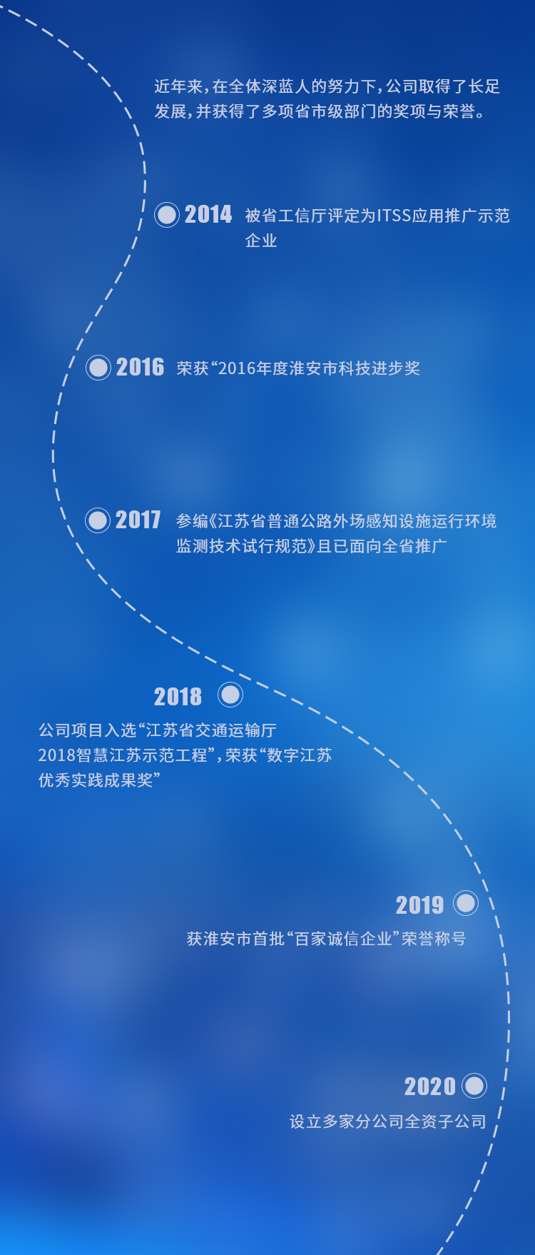深藍數字科技有限公司成立于1999年,注冊地位于江蘇省淮安市,在南京、鎮江、鹽城、連云港等地設有分公司且均配備有專業的運營團隊。經過多年創新與發展,現已成為智慧城市投資建設運營、智能化總包項目設計實施、涉密與非密信息系統集成、專業信息化運維服務、軟硬件開發以及產學研成果轉化于一體的多元化公司,通過不斷創新的技術和不斷完善的服務,面向政府、軍隊、金融、醫療、教育等行業提供全面的綜合性解決方案。